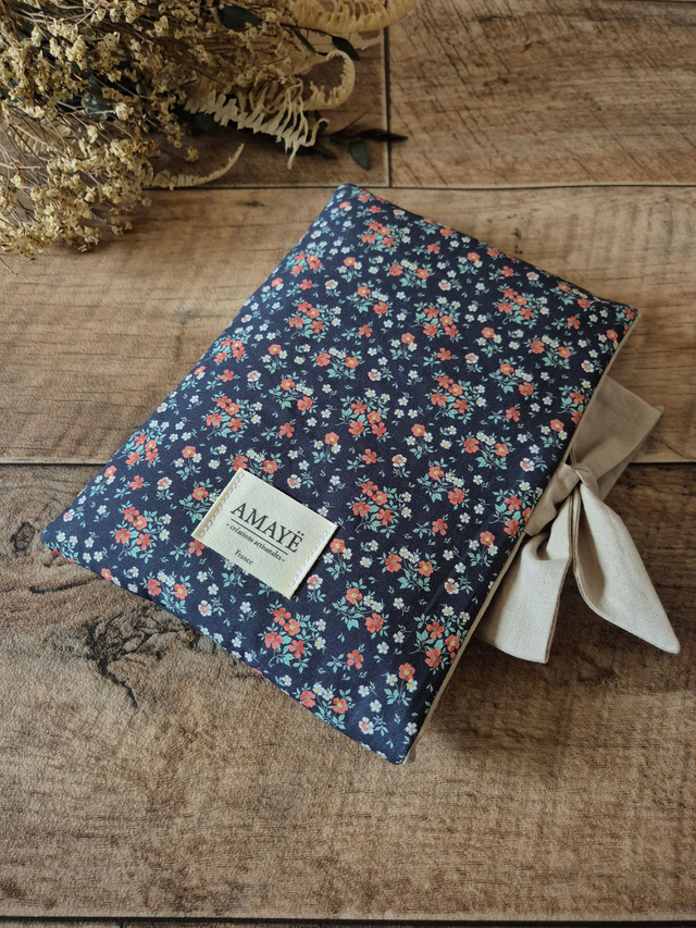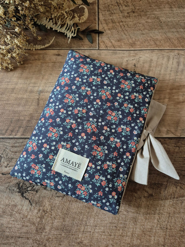 Housse de livre molletonnée "Fleurs rouges"